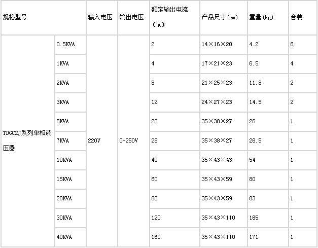 可连续调节输出电压0—250V,具有波形不失真、体积小、重量轻、效率高、使用方便、性能可靠能长期运行等特点。