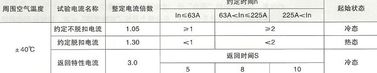 表5:配电用反时限断开